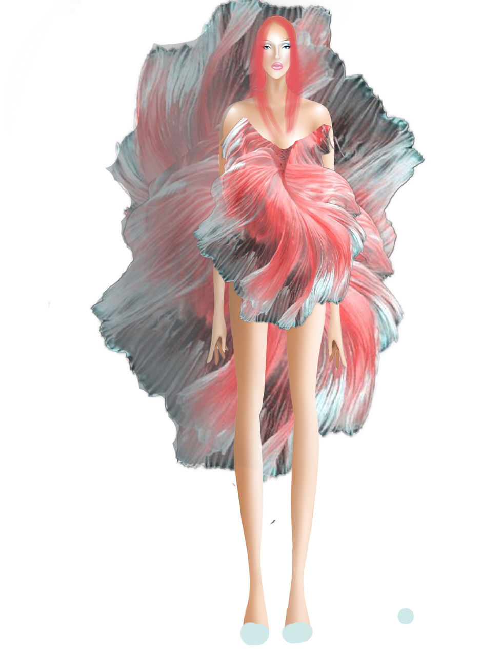 This project merges digital illustration with experimental design by creating fashion compositions entirely sourced from oceanic imagery. Working in Procreate, I illustrated a model that serves as the foundation for the collaged garments. This showcases the creative possibilities of digital mixed-media techniques.