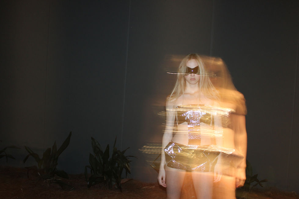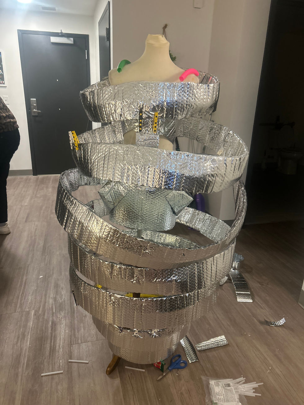 An unconventional materials project made completely out of bubble wrap. This features hoops surrounding the body and a bubble wrap bodysuit